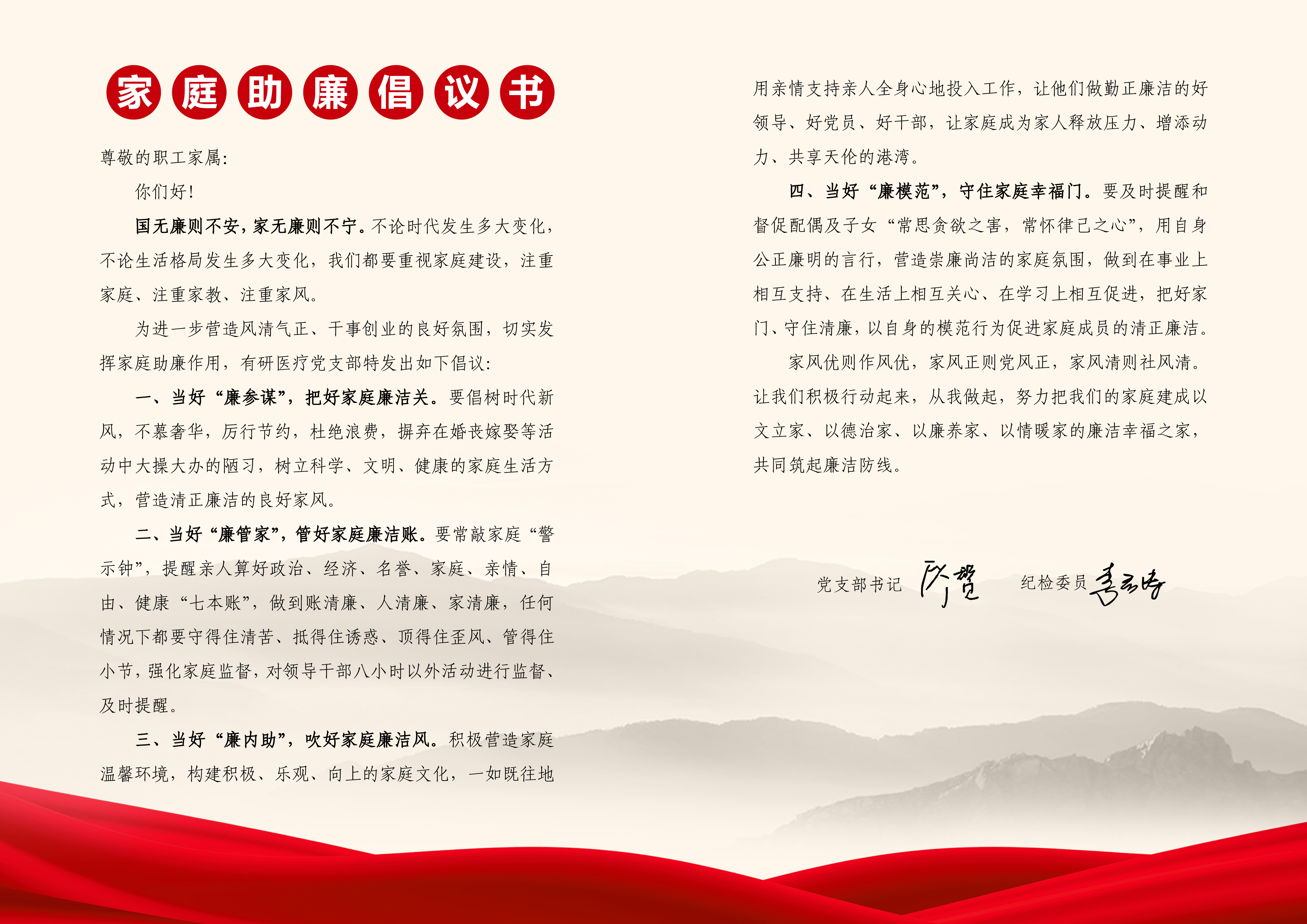通过张贴横幅海报、播放警示教育视频、发布廉“节”提醒等多种方式,做好廉洁宣传工作,加强廉洁文化建设。充分利用网站、微信公众号、微信工作群等网络媒介发布廉洁宣传信息和典型案例,引导干部职工严守纪律规定,让廉洁提醒成为一项“习俗”。