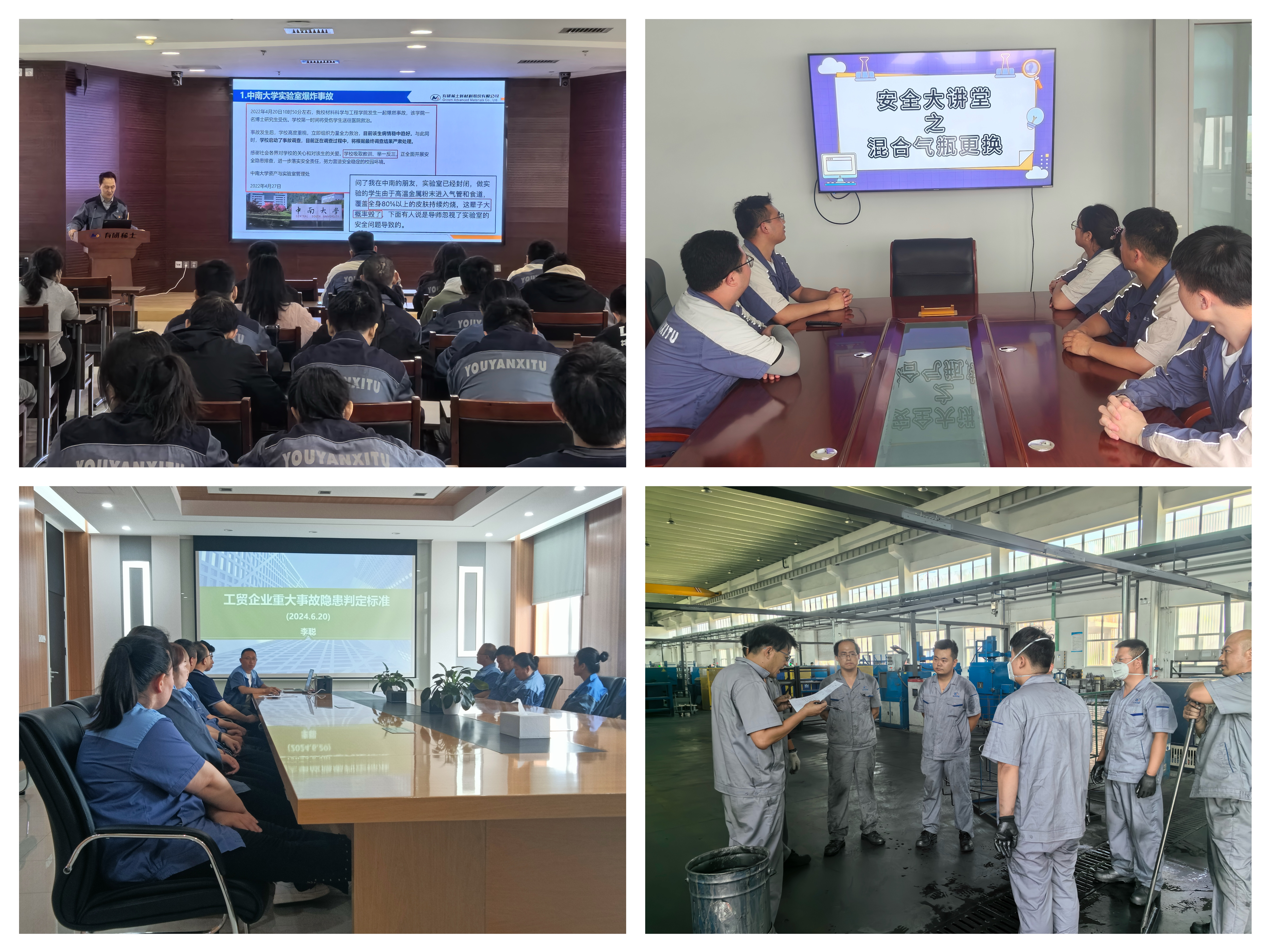各子公司员工主动参与,开展了内容丰富的安全大讲堂活动,内容涉及重大隐患判定、粉尘防爆、职业健康等专题。有研稀土紧抓四新活动和实验室安全管理,开展研发及实验室安全管理培训;有研医疗紧盯全员安全意识和隐患排查能力提升,开展消防安全和重大事故隐患判定标准培训;山东国晶辉围绕制度规程执行、消防安全和危化品安全管理,开展大讲堂活动。有研稀土和山东有研国晶辉录制的《涉爆粉尘安全》、《氟化氢安全》和《有毒气体泄漏专项演练》视频入选集团安全月避险逃生演练科普视频展播。
