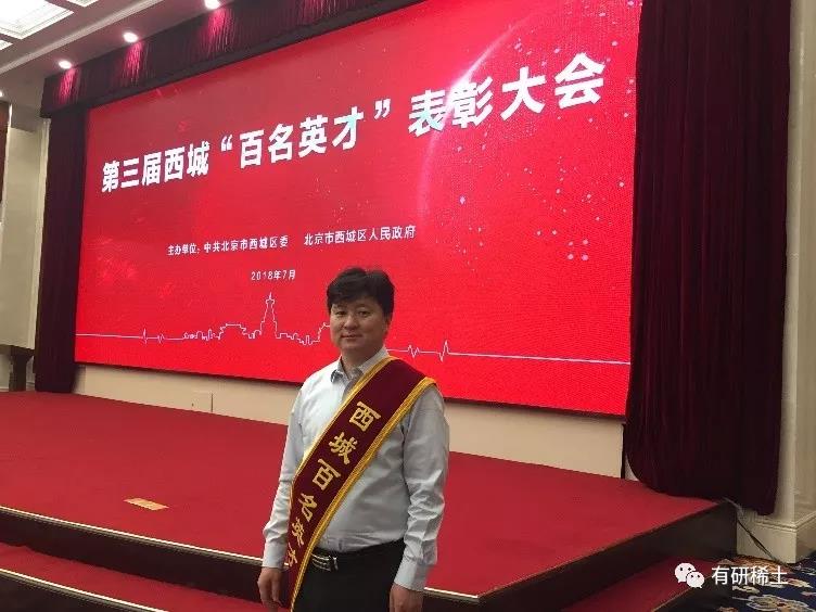热烈祝贺有研稀土总经理于敦波教授荣获第三届西城“百名英才”之“杰出人才”