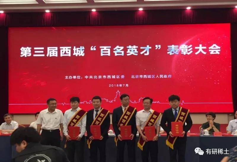 2018 年7月26日,第三届西城区“百名英才”表彰大会隆重举行。有研稀土总经理于敦波教授喜获“百名英才”中的“杰出人才”荣誉称号。这是继2012年黄小卫教授获得西城区首届“百名英才”后,有研稀土第2位科技工作者获得此殊荣。