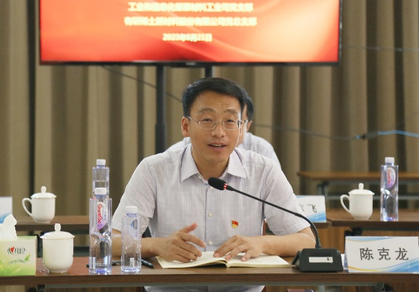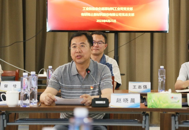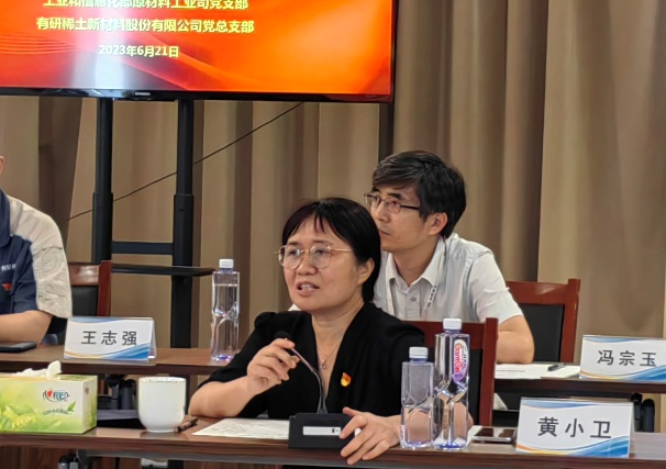 为深入学习贯彻习近平新时代中国特色社会主义思想和党的二十大精神,全面落实习近平总书记关于推动稀土产业发展的重要指示精神,共谋稀土行业绿色可持续发展,6月21日,工业和信息化部原材料工业司党支部联合有研稀土新材料股份有限公司党总支在燕郊基地开展“联学联建共奋进、党建引领促发展”活动。工信部原材料工业司司长陈克龙,副司长冯猛、张海登,中国有研党委书记、董事长赵晓晨,首席科学家、中国工程院院士黄小卫,党委委员、副总经理周旗钢出席活动。中国有研党委副书记王兴权主持活动。
