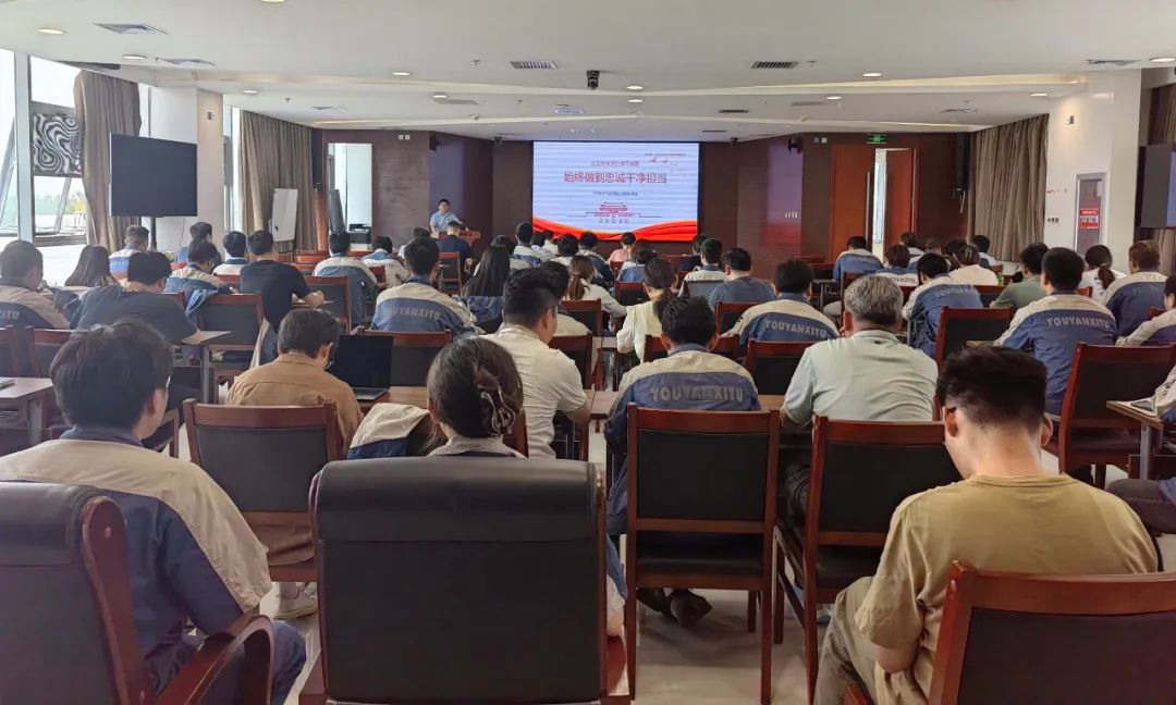 刘荣辉从《中国共产党纪律处分条例》修订的意义、党纪处分遵循的原则、六大纪律修订的主要内容、党纪处分影响及后果、从轻从重处分的情形、对违法犯罪党员的纪律处分规定、始终做到忠诚干净担当等七个方面进行讲解,并对照《条例》有关规定,对党员干部的要求、对公司经营活动等做了提醒和强调。