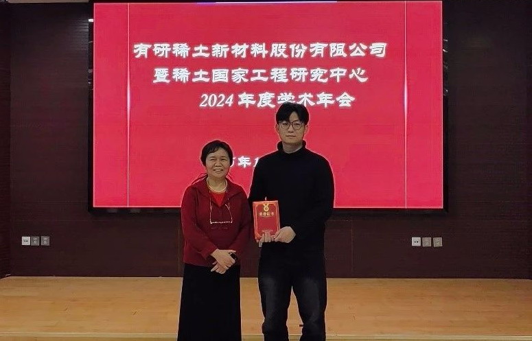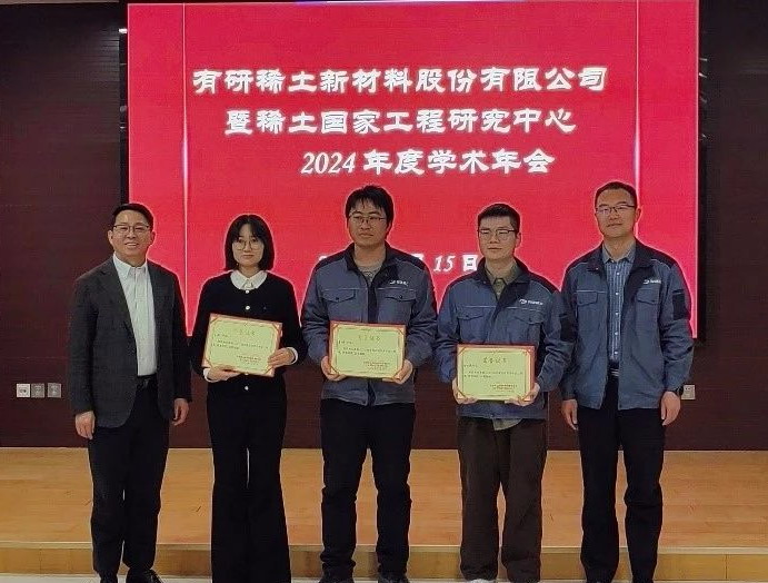 黄小卫、于敦波、刘荣辉、王志强、冯宗玉、张彤6位稀土冶金和材料领域专家应邀担任本届学术交流会评委,17名科研生产一线的青年科技人员和在读研究生做学术报告。会议聚焦稀土绿色高效提取分离、高纯稀土金属及靶材、稀土磁性材料、稀土发光材料、稀土晶体材料、稀土抛光材料、稀土新能源材料等全产业链领域,深入交流和讨论了战略性新兴产业、未来产业方面的基础研究、前沿新材料探索、共性关键技术攻关以及机器学习、产业数智化建设等方面取得的成果以及存在的问题。会议评选出特等奖1名,一等奖2名,二等奖3名,三等奖4名。