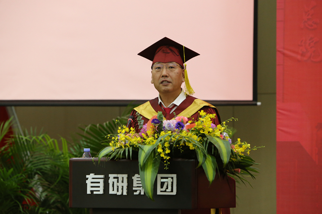 院长赵晓晨发表讲话,他回顾了几年来有研各方面的发展和同学们的成长。寄语全体毕业生要胸怀报国之志,在贡献国家中实现人生价值;脚踏实地奋斗,在平凡的岗位做出不平凡的成绩;树立终身学习观念,长期坚守,不断学习、不断探索;培养团结协作意识,训练整合资源实现快速创新的能力。希望毕业生牢记习近平总书记嘱托,肩负起历史使命,坚定前进信心,矢志报国,奋力前行,不负时代,不负韶华。最后为全体毕业生送上最真挚的祝福,祝同学们前程似锦、幸福快乐!